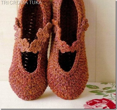 Sapatilha em crochê é tudo de bom para se andar em casa, deixando os pés confortáveis.