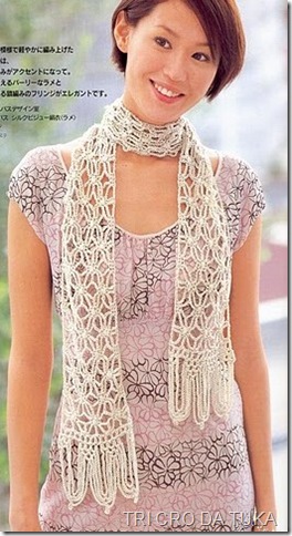 Cachecol muito bem trabalhado e fácim de fazer. Aproveite os dias frios e teça vários de modelos diferentes, para a família tôda e pros amigos também! Se quiser outros modelos, entre na pesquisa deste blog ou na seção ‘marcadores’ e clic em cachecol e quem sabe ocêis achem ali um que agrade.