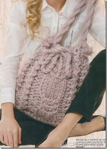 Uma sacola de tricô muito bonita e prática e com um tamanho muito bom para levar as comprinhas de todos os dias…