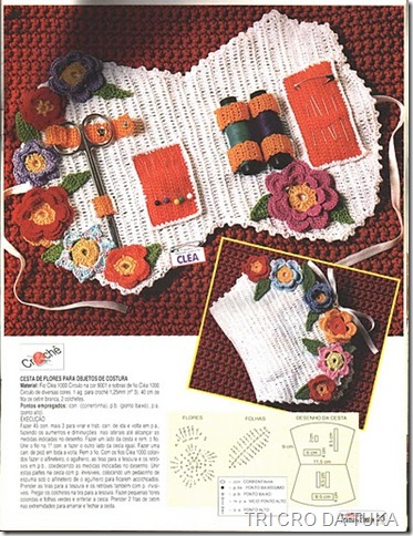 Ocêis que gostam de fazer coisinhas diferentes, olha aí uma para entreter ocêis neste final de semana…uma cestinha em crochê para organizar costura…