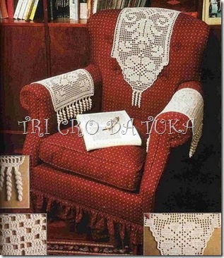 …mas, nunca estiveram tão em alta! Encostos e descansos para braços de poltronas e sofás executados em crochê filé. Ficam maravilhosos…